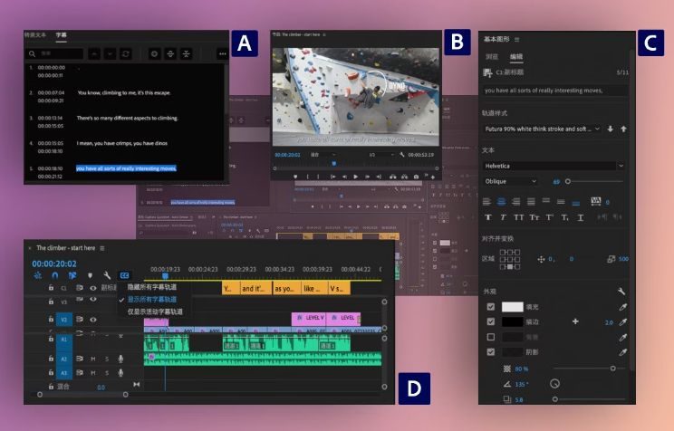 - 创建新的字幕轨道,并开始根据视频中的对话和时间戳添加字幕。